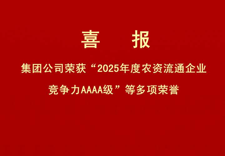 • 喜報|集團公司榮獲“2025年度農資流通企業競爭力AAAA級”等多項榮譽